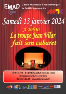 Les inscriptions pour ce spectacle se dérouleront du jeudi 23 janvier au jeudi 30 janvier.