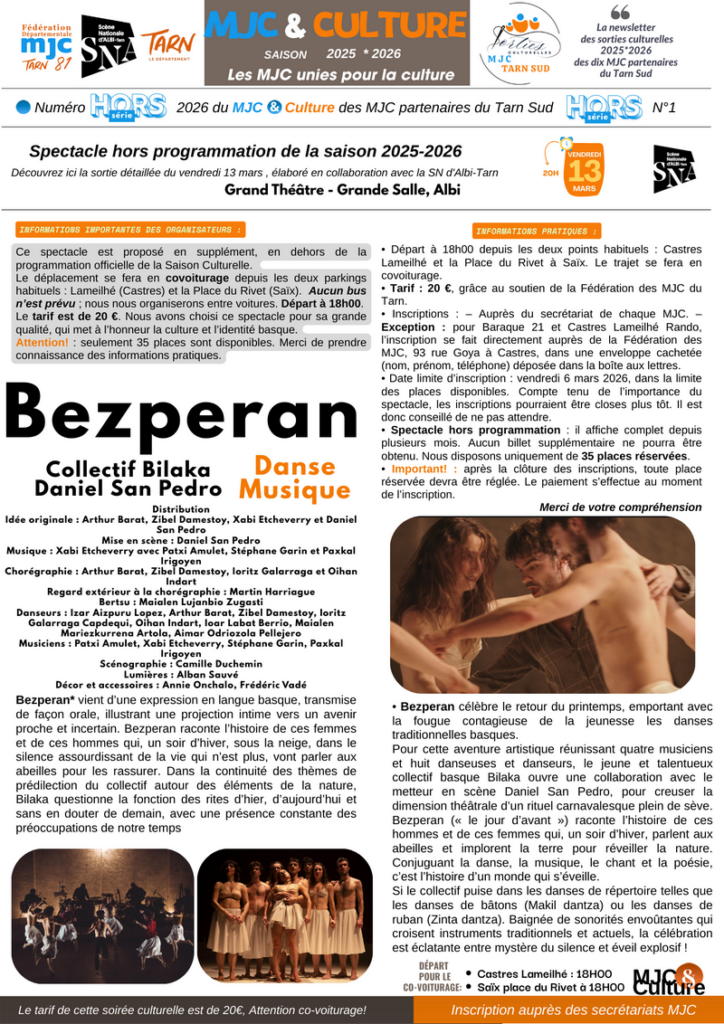 Spectacle du vendredi 13 mars 2026 au SNA Albi