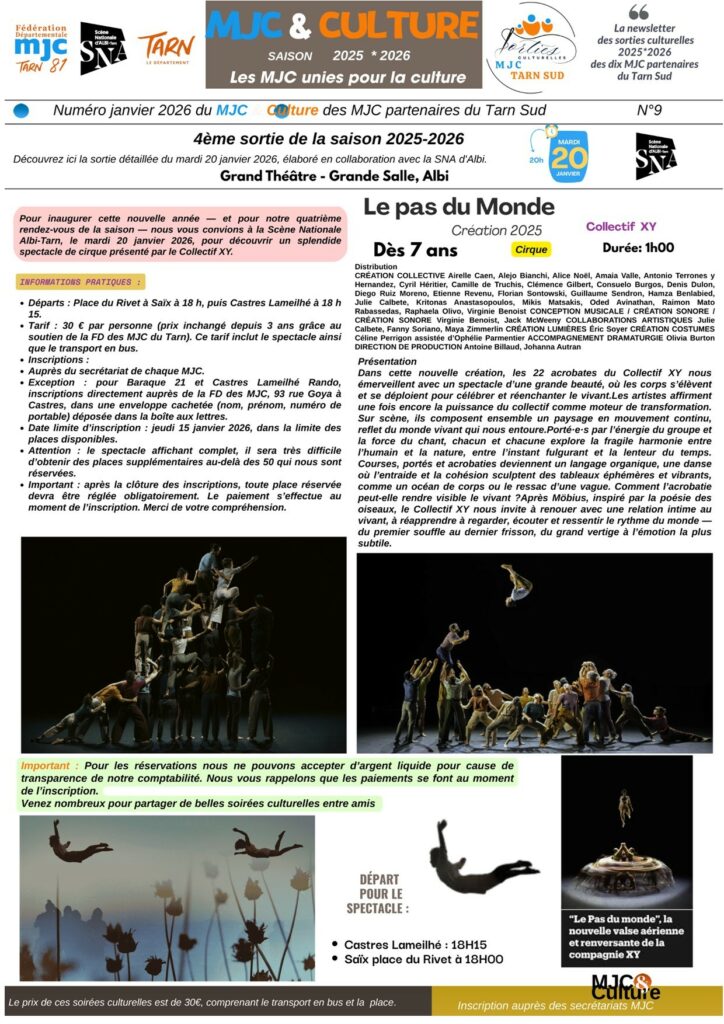 Pour débuter 2026, quoi de plus sympa qu’un spectacle de cirque par une très belle troupe, la Compagnie X Y, le mardi 20 janvier à 20 h à la SNAlbi Tarn.