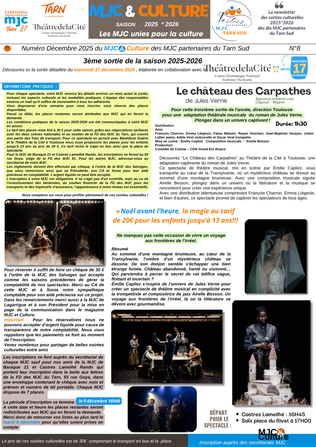 – A compter du 9 décembre toutes les personnes inscrites ne pourront pas être remboursées, les billets étant commandés et imprimés. Merci de votre compréhension. Le paiement se fait à l’inscription.